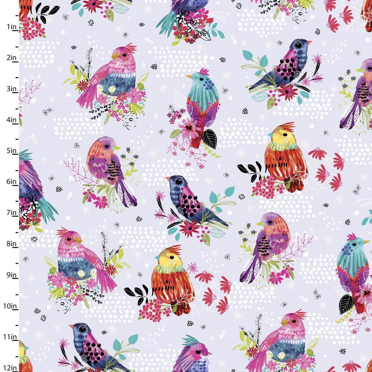 Bright Birds Birds and Dots 14986-LTLAVENDER Digitally Printed Cotton Woven Fabric
