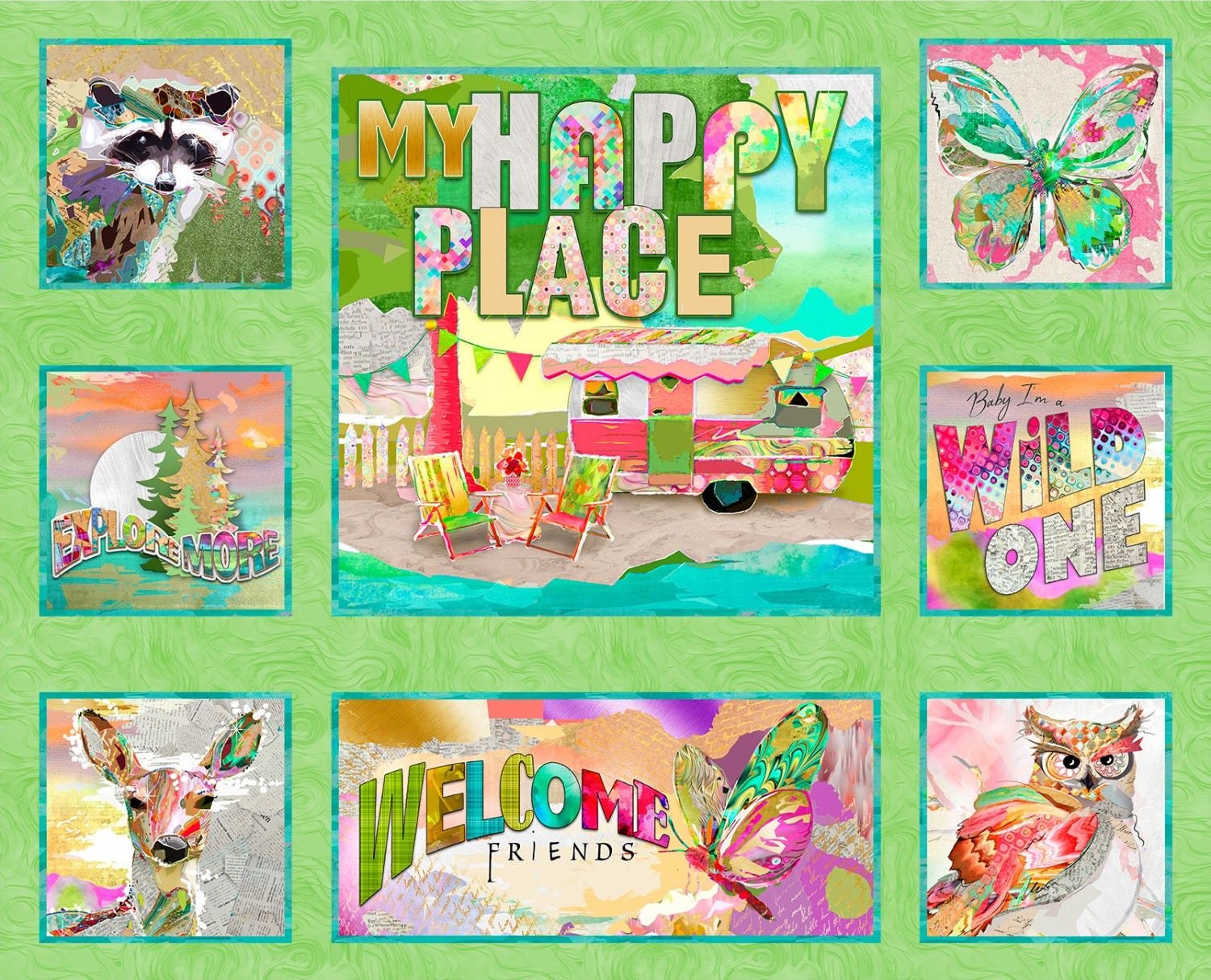 My Happy Place by Connie Haley 35" Panel Camper Green 18043-GRN Digitally Printed Cotton Woven Panel