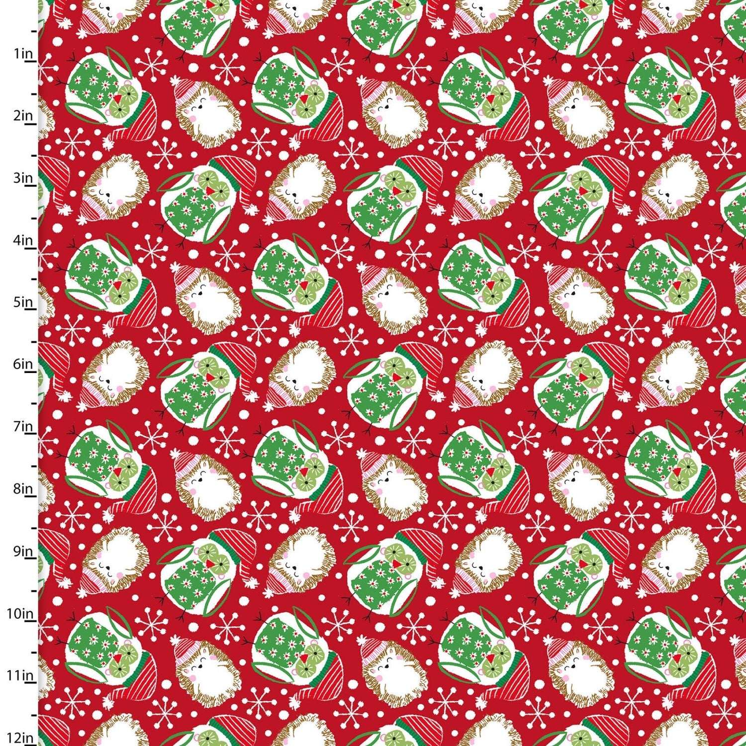 Winter Woodland Red Owls & Hedgehogs 15145-RED Cotton Woven Fabric