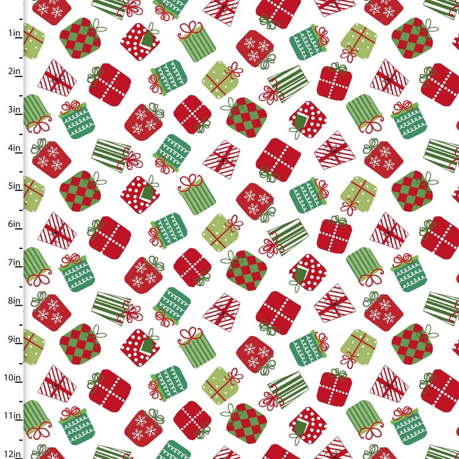 Winter Woodland White Presents 15143-WHITE Cotton Woven Fabric