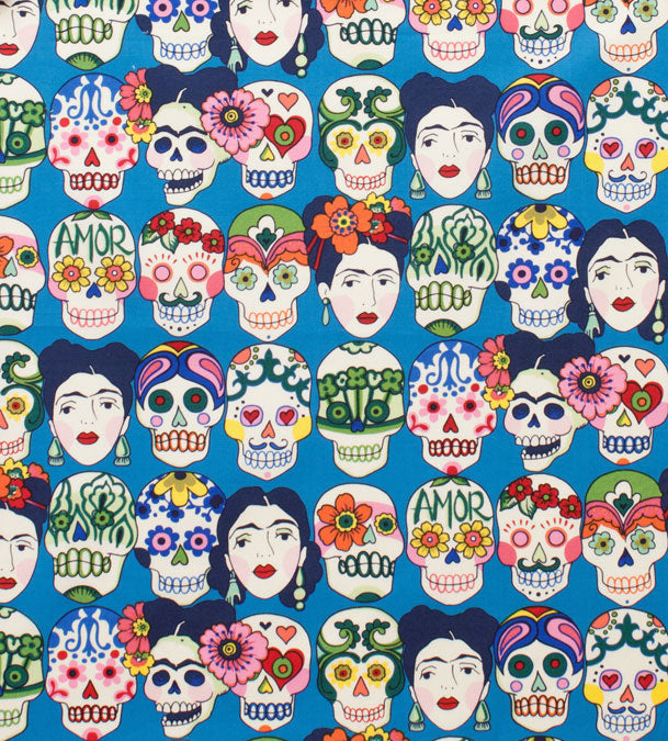 Fabric is priced by the 1/2 yard and will be left continuous (for example if you order 3 you would get a 1.5 yard cut of fabric.) Laminated Cotton Woven 43/44" wide. Skulls are about 3â tall . Alexander Henry took our favorite cotton woven prints and coated them with durable polyurethane, making them the perfect go-to cotton for fun bags, raincoats, kitchen, crafts and more. Weâre happy to say our Laminates have no PFOS (PerFluoroOctane Sulfonates), no PFOA (PerFluoroOctanioc Acid) and they are Formaldehyde and lead free!
