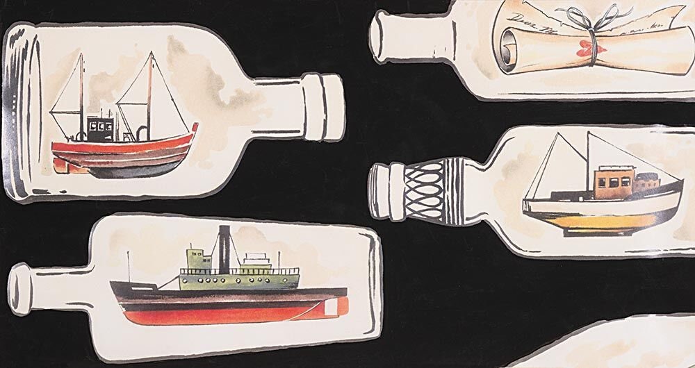 Nicole's Prints 8834b Black Message in A Bottle Cotton Woven Fabric