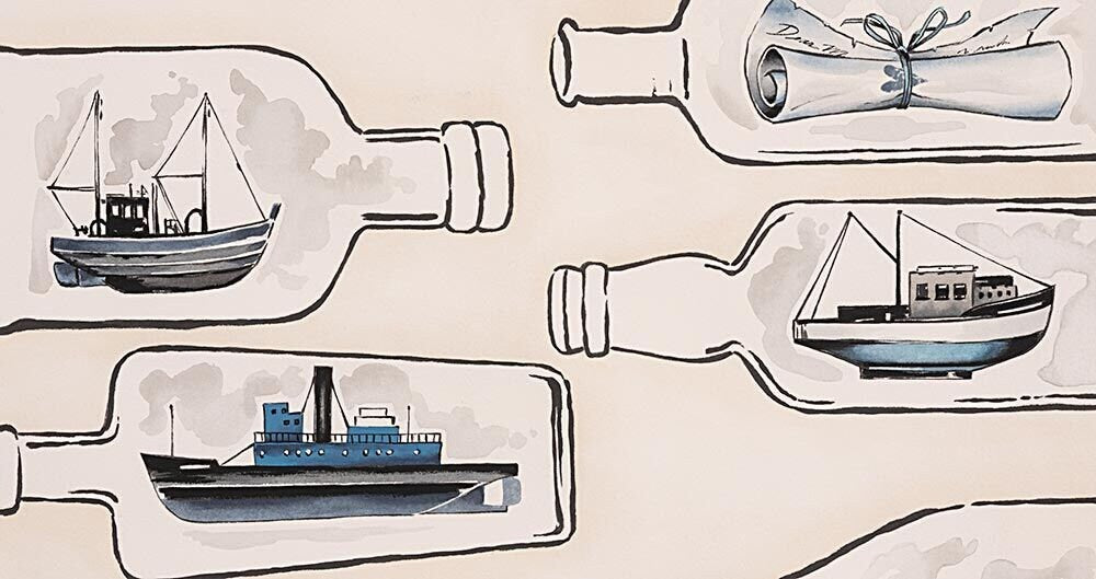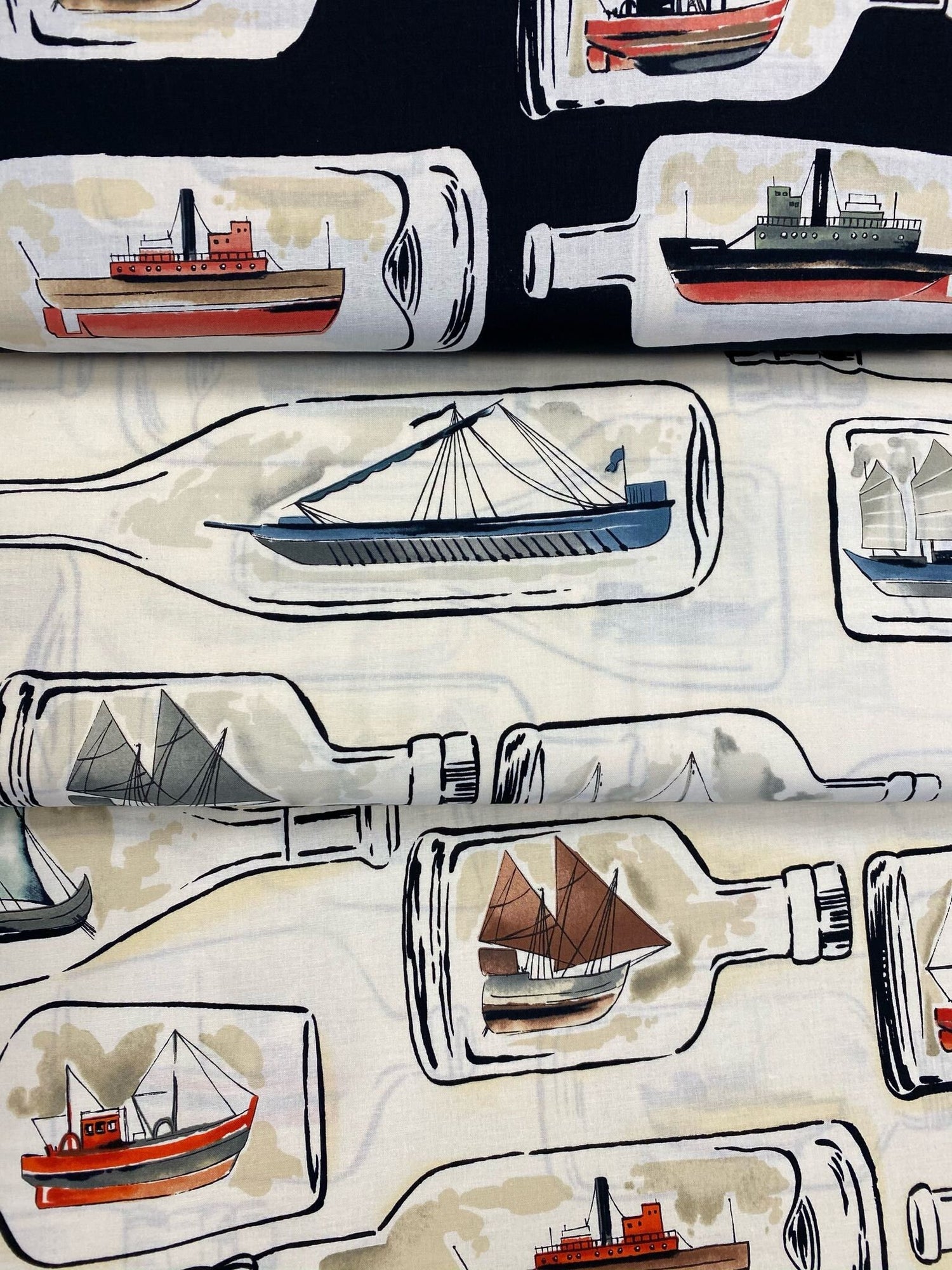 Nicole's Prints 8834c Tea/Blue Message in A Bottle Cotton Woven Fabric