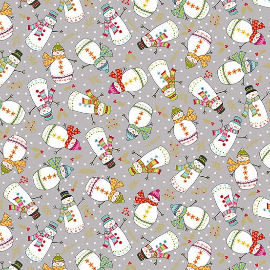 Snowmen on Grey TP-2121-1 Cotton Woven Fabric