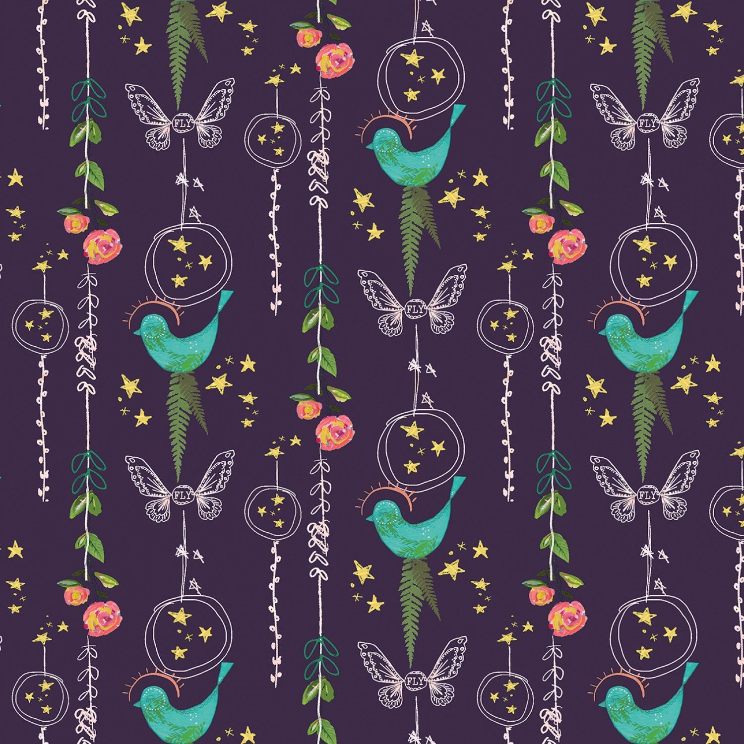 Inspired Heart by Kelly Rae Roberts Birds Dark Plum 13336B-64 Cotton Woven Fabric