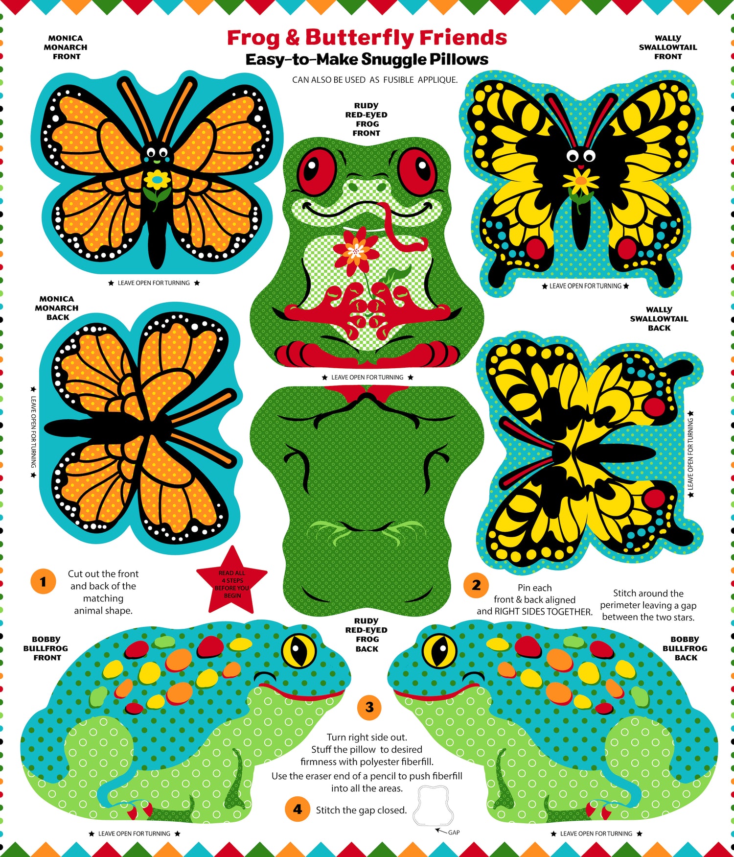 Snuggle Pillows III by Yolanda Fundora 36" Panel Frogs & Butterflies 2585P-01 Cotton Woven Panel
