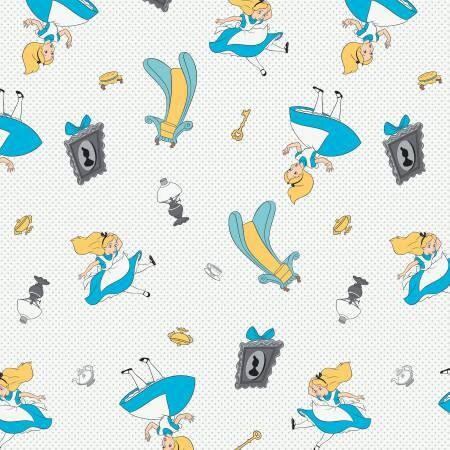 Alice in Wonderland Falling on Light Gray Cotton Woven Fabric 85020102 03