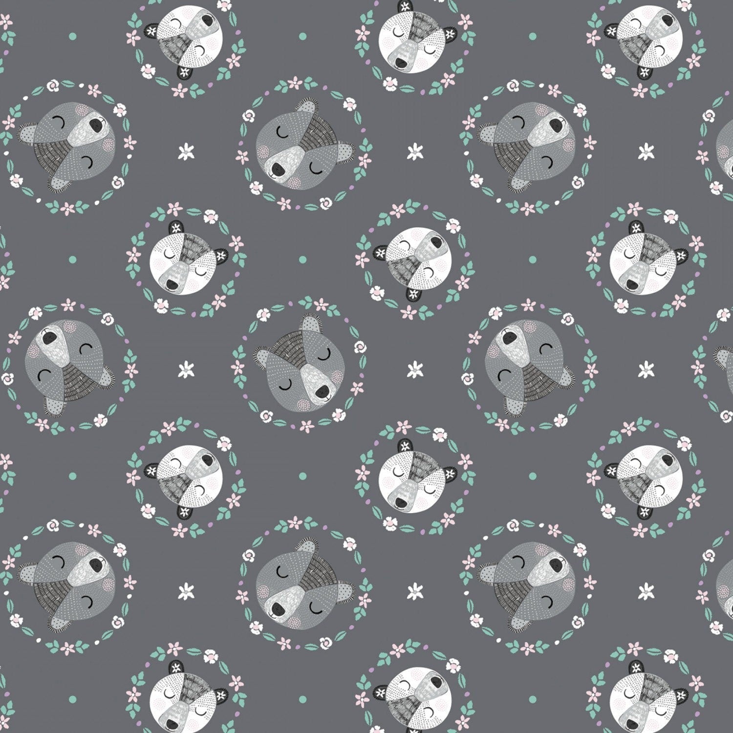 Bear Hug Grey Bear Wreaths 21181502-2 Cotton Woven Fabric