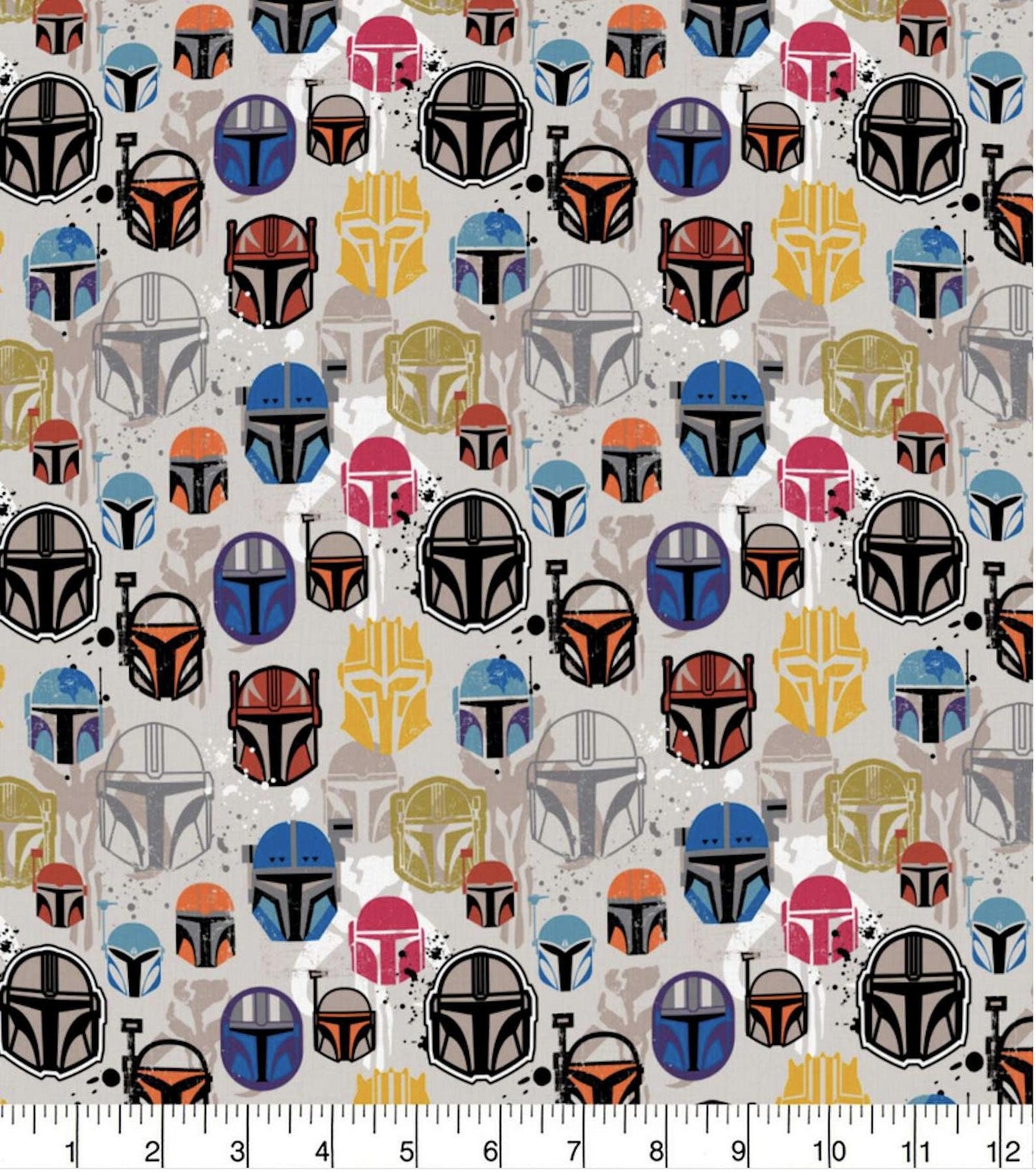 Licensed Star Wars The Mandalorian Colorful Helmets on White 73800210JAS Cotton Woven Fabric