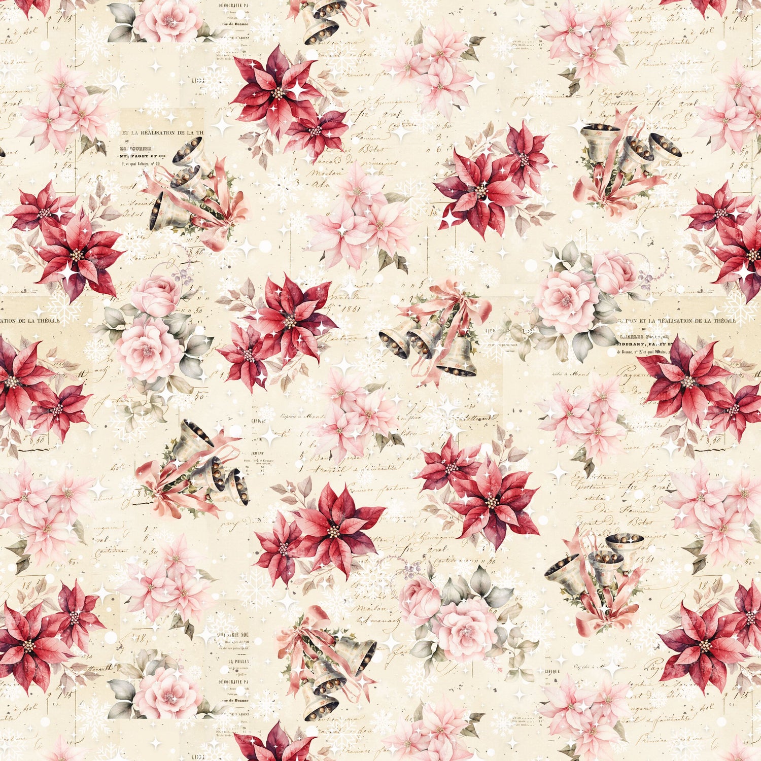 Preorder July 2026: Christmas Magic Poinsettias and Bells Ivory 2017-41 by Frank Garcia