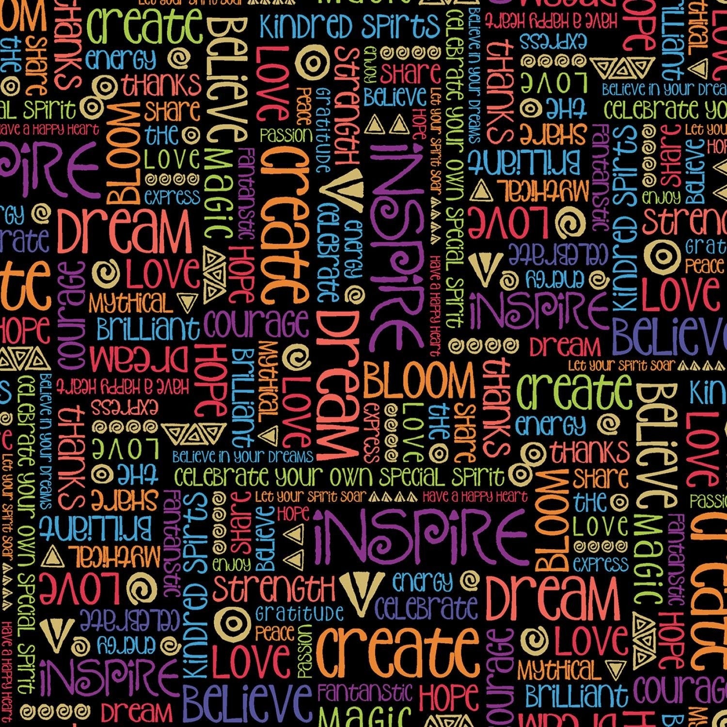 Celestial Magic by Laurel Burch Words Black Y3162-3 Cotton Woven Fabric