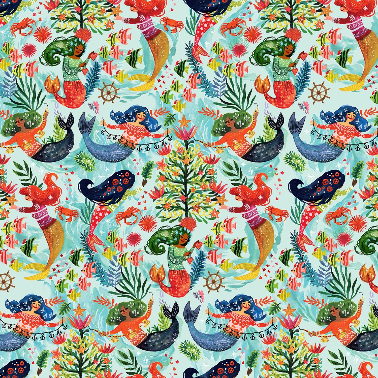 Fantastical Holidays by Miriam Bos Mermaids In Sweaters ST-DMB2228MULTI Cotton Woven Fabric