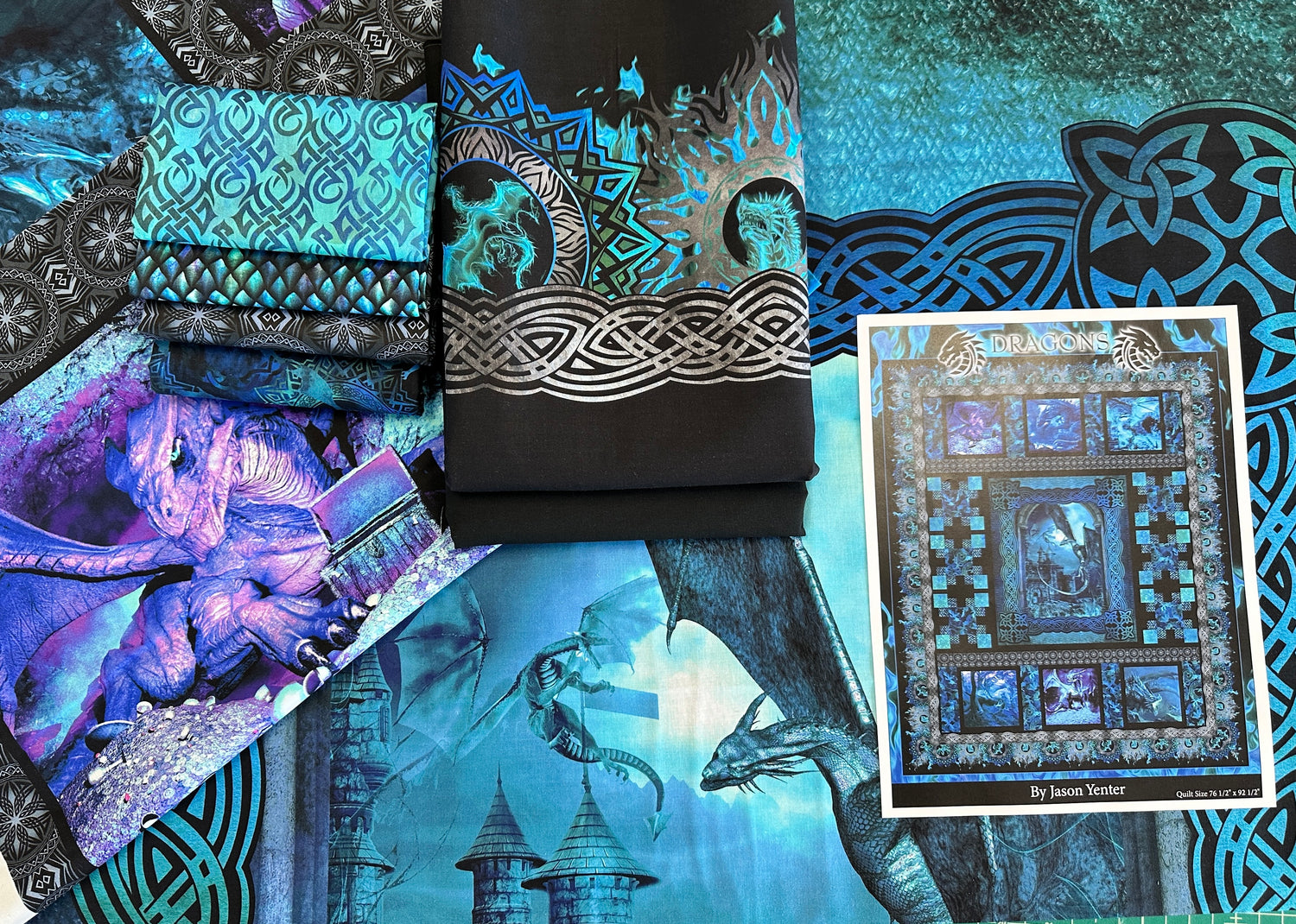 Dragons Blue Fury Quilt Kit Finished size 761⁄2" x 921⁄2” USA Shipping included in price
