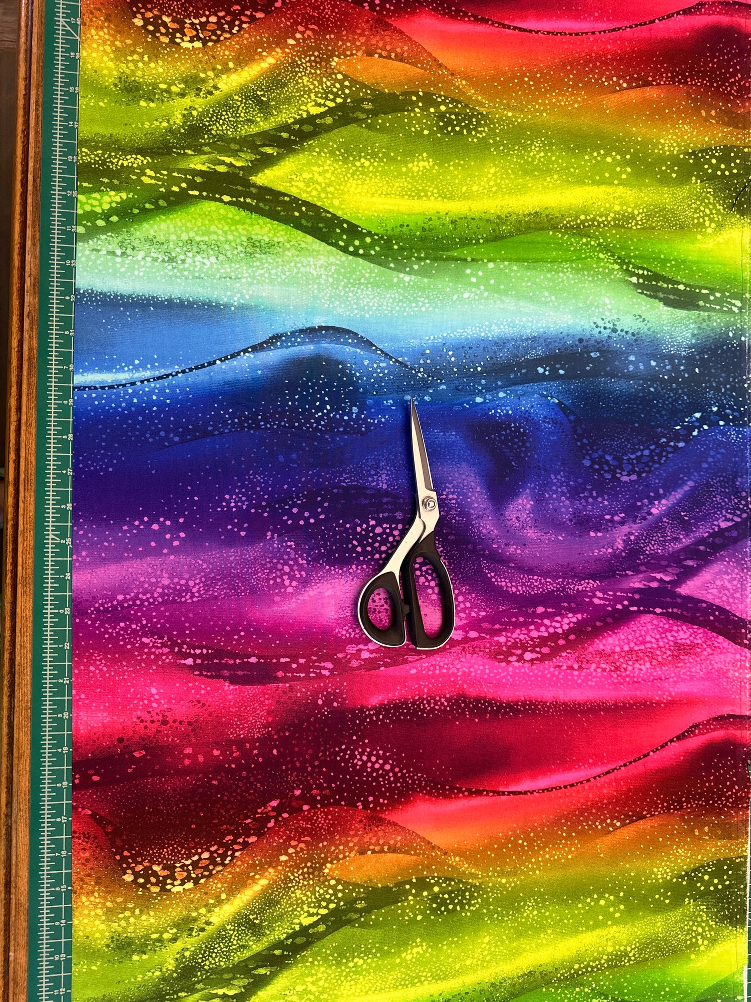 Pacifica Rainbow Waves Sold as a 25” Repeat Panel Cut Red and Multi D195R Cotton Woven Fabric