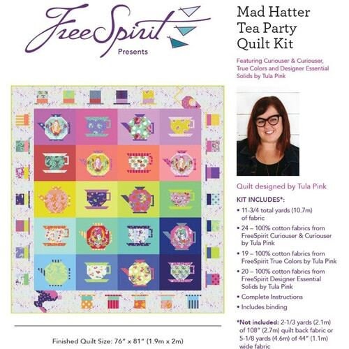 Tula Pink's Mad HatterTea Party Quilt Kit Featuring Curiouser & Curiouser Fabric Line finished size 76" x 81" USA Shipping included in price.