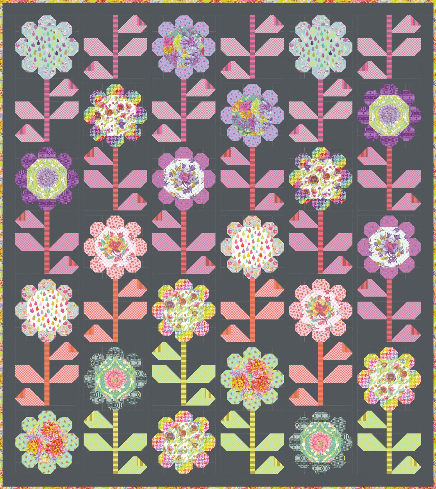 Untamed by Tula Pink Quilt Kits Blooming Bouquet Dark Quilt Kit. USA Shipping Included in Price.