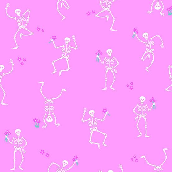 PREORDER ITEM-EXPECTED MARCH 2026: Ghostly Garden by K P Creates Skeleton Jig Pink A-10196-E Cotton Woven Fabric