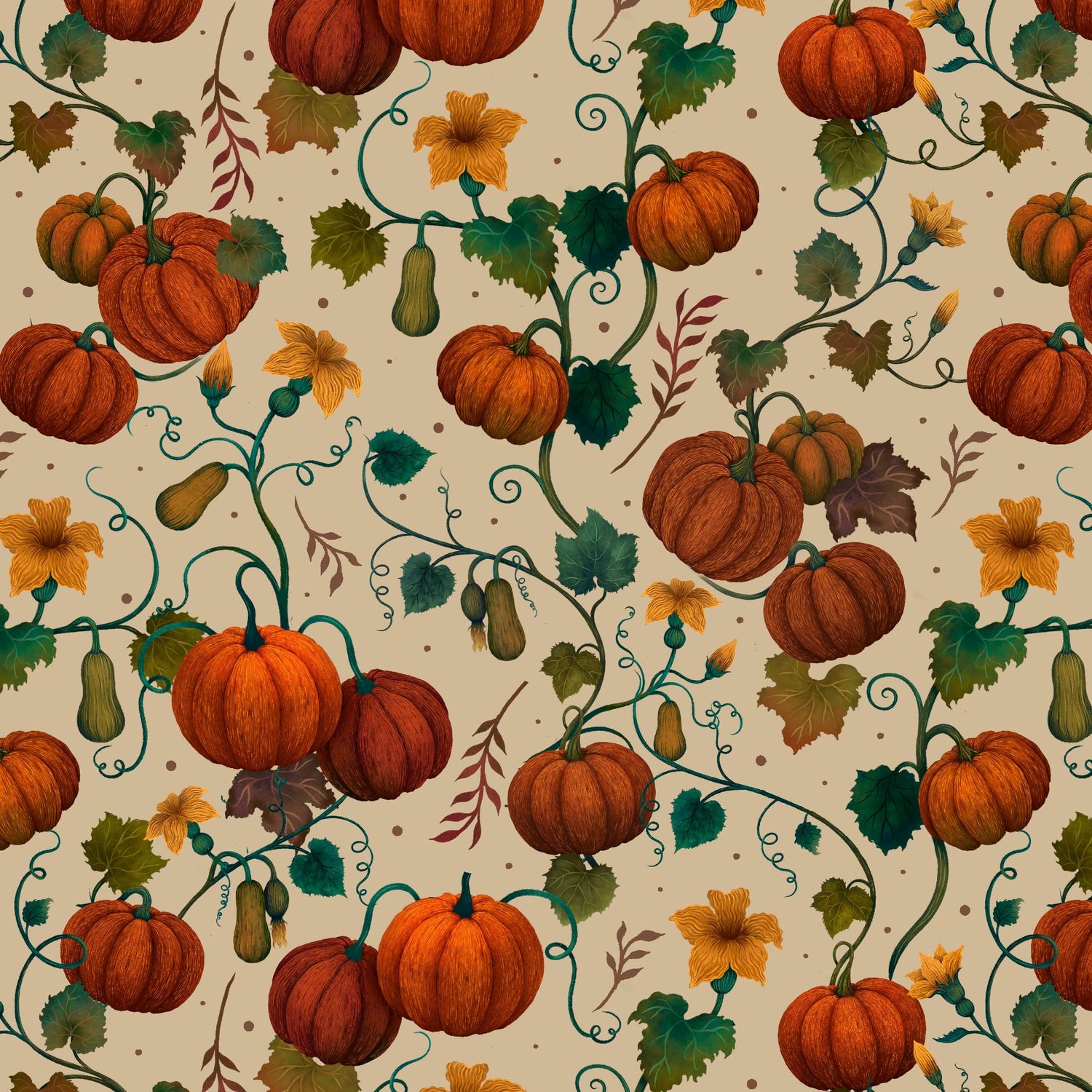 Preorder June 2026: Harvest Haunt Pumpkin and Squash Vines Cream 4811-41 by Episodic Drawing