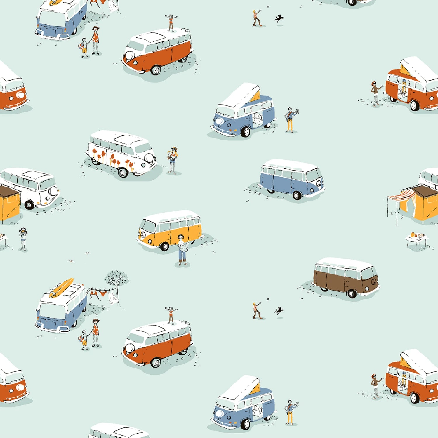 Preorder July 2026: Heather Ross Favorites Aqua Bus 55211D-3 by Heather Ross