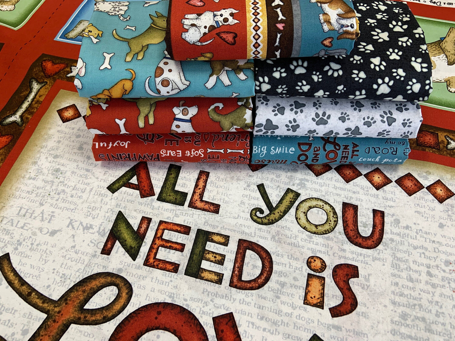 All You Need Is Love and a Dog by Beth Logan Paw Print Allover 9054-90 White Cotton Woven Fabric