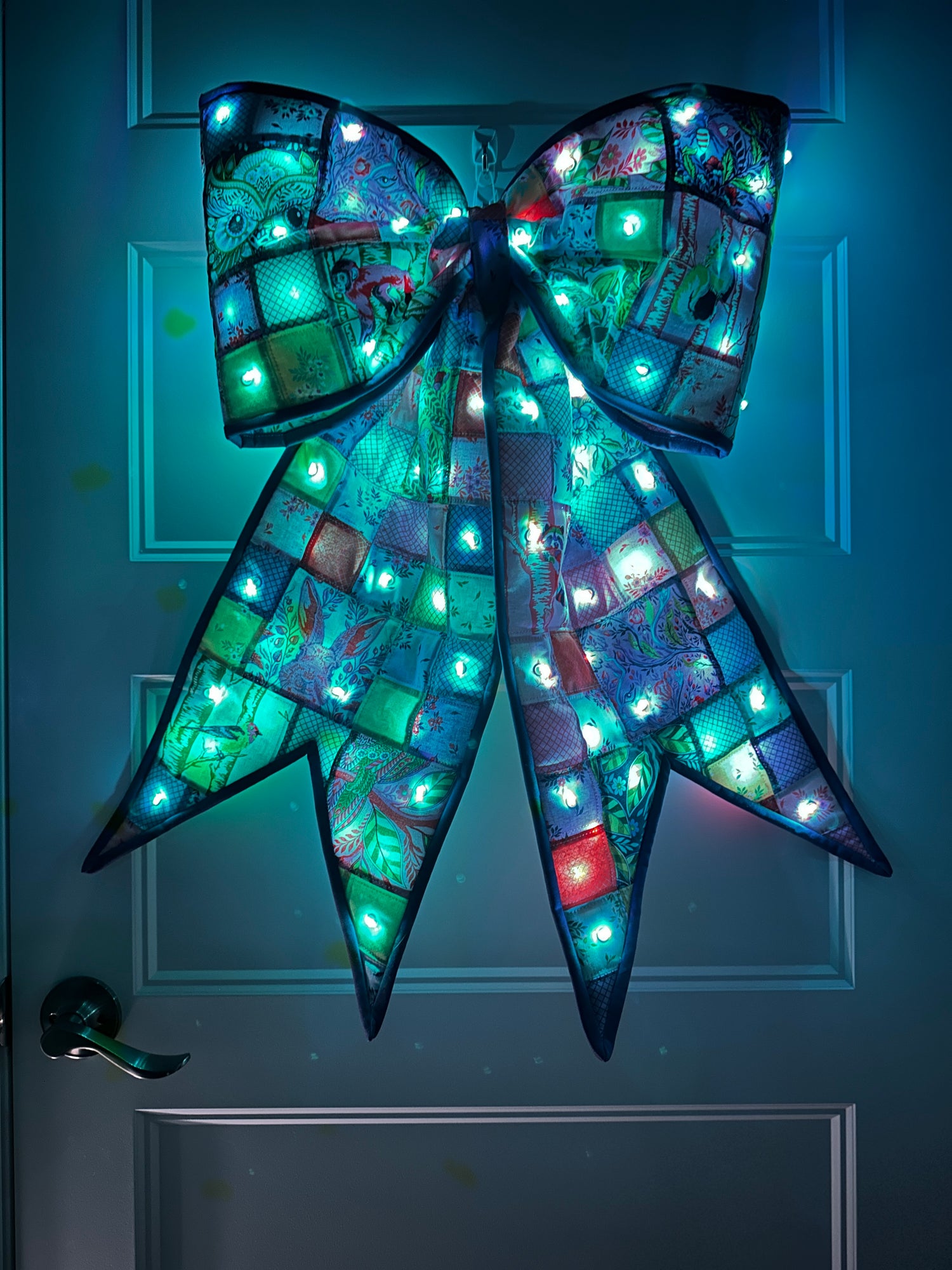 Level up your Big Giant Quilted Bow (made from the LindseyGraceCreates pattern) with Teresa Walker of The Crafty Nuisance! In this virtual 6-hour workshop, you'll learn techniques to make assembling the "basic" bow easier, including binding the edges to avoid turning the panels right-side out. (Plus you'll be able to translate those binding skills to other projects well beyond the bow!) AND Teresa will teach different ways to add fairy lights and other embellishments to make your bow extremely festive!