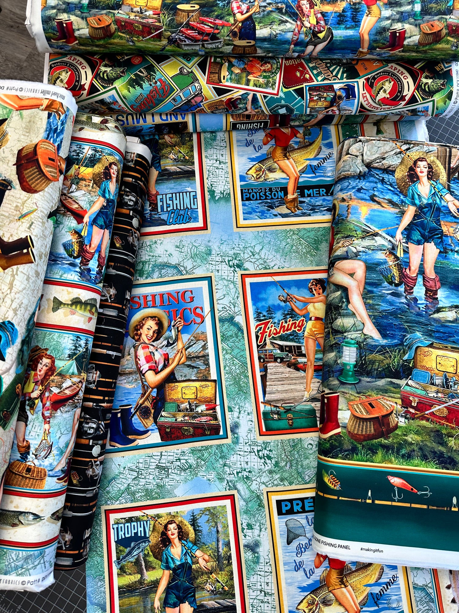 Girls Gone Fishing 24" Panel Forest DCX11936-FORE Cotton Woven Panel