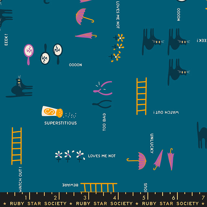Spooky Darlings by Ruby Star Society Unlucky Cat Teal RS5073-13 Cotton Woven Fabric