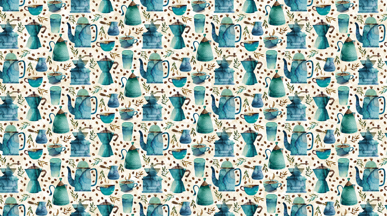Barista by Deborah Edwards and Melanie Samra Digitally Printed Coffee Pots Cream Multi DP27697-11 Cotton Woven Fabric
