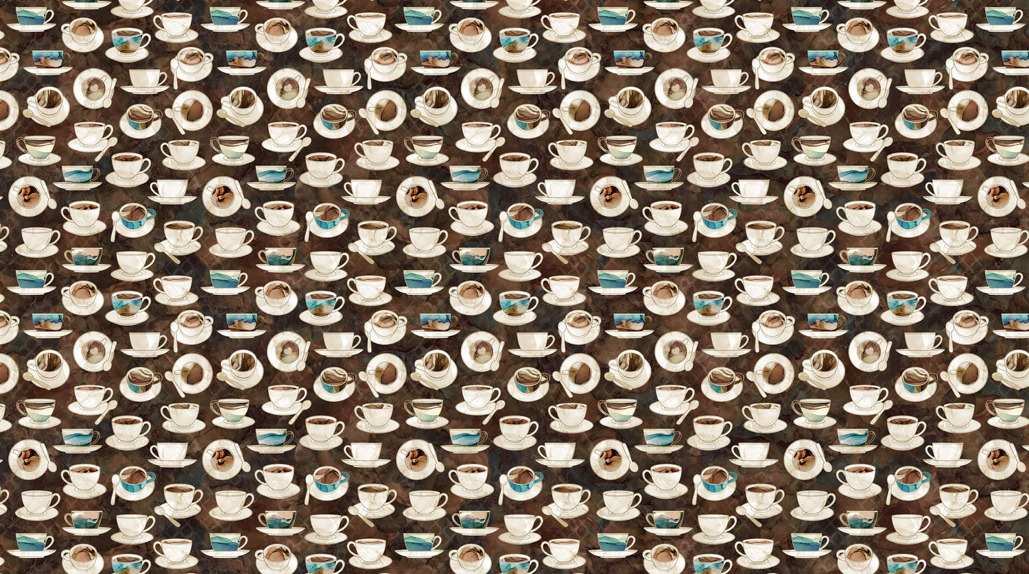 Barista by Deborah Edwards and Melanie Samra Digitally Printed Cups & Saucers Brown Multi DP27698-36 Cotton Woven Fabric