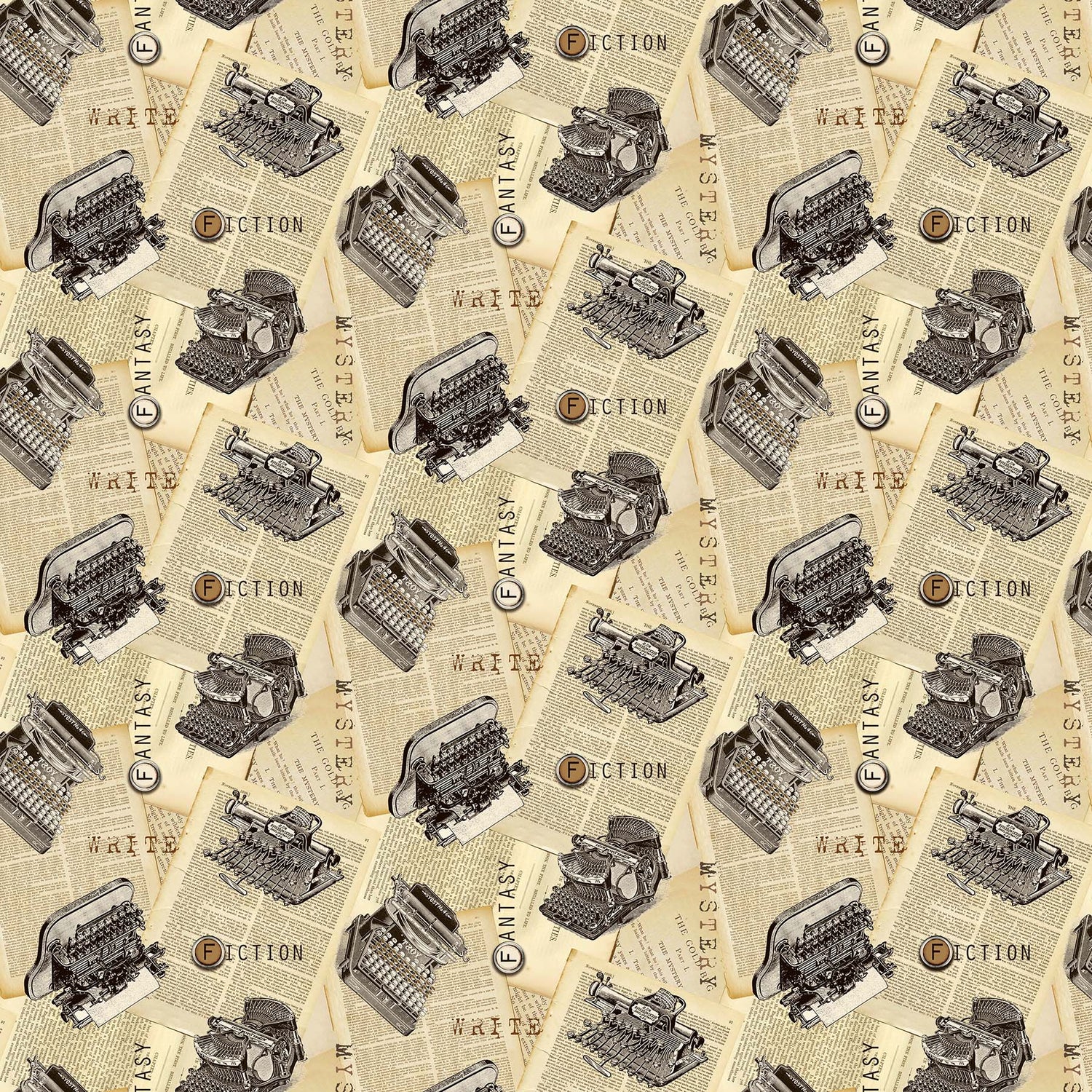 Cat Tales by Charles Wysocki & Deborah Edwards Typewriters Beige 24528-12 Cotton Woven Fabric
