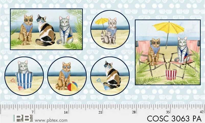 Coastal Kitty and Hot Dogs by World Art Group Multi Kitty 24" Panel COSC3063PA Cotton Woven Panel