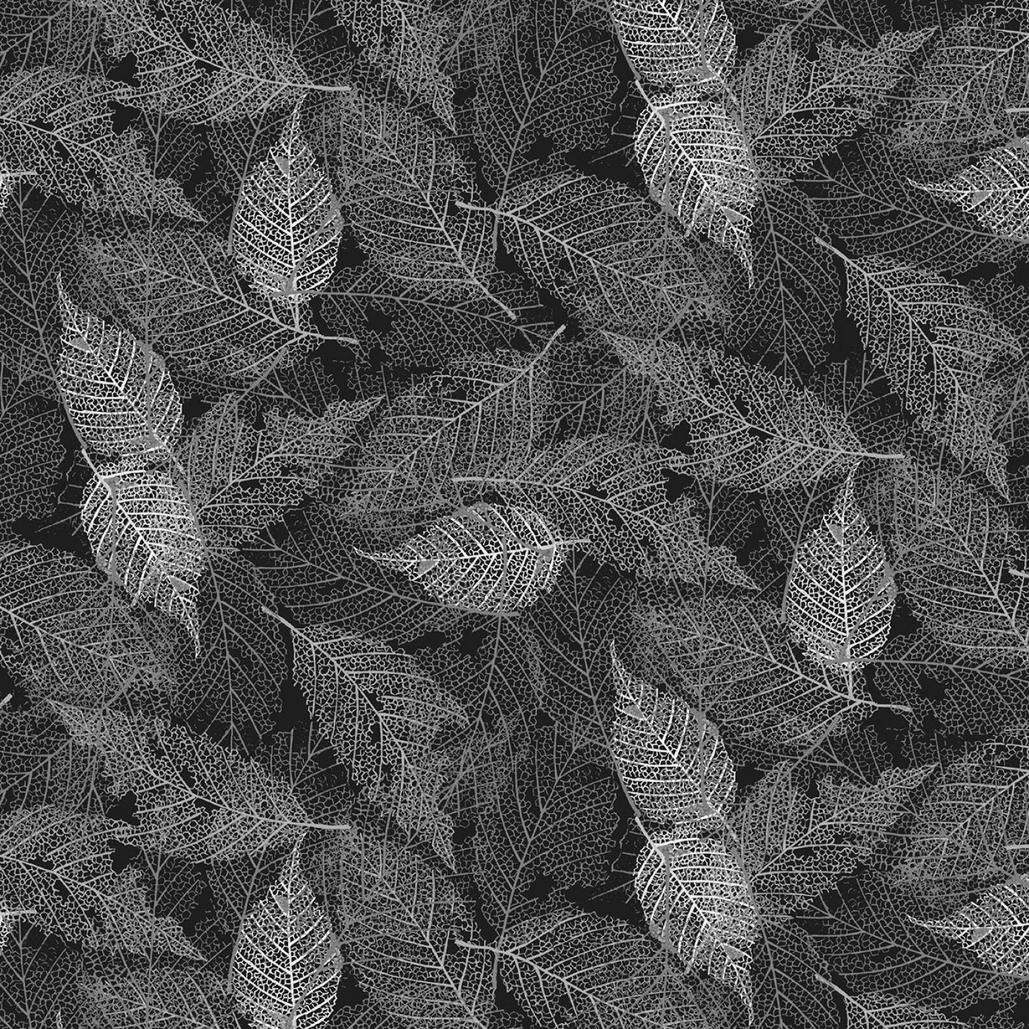 Midnight Woods Leaves Grey MIWO4350-S Cotton Woven Fabric