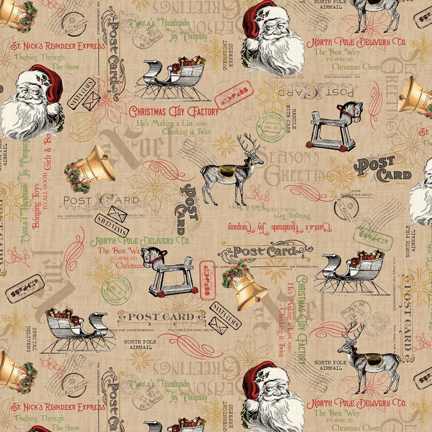 North Pole Express by Pela Studio All Over Santa Neutral NPEX4767-NE Cotton Woven Fabric