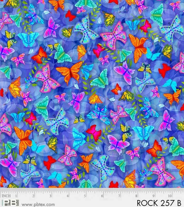 Rock Garden by Teresa Ascone Blue Butterflies ROCK257B Digitally Printed Cotton Woven Fabric