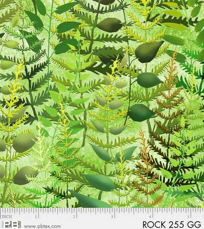 Rock Garden by Teresa Ascone Green Ferns ROCK255G Digitally Printed Cotton Woven Fabric