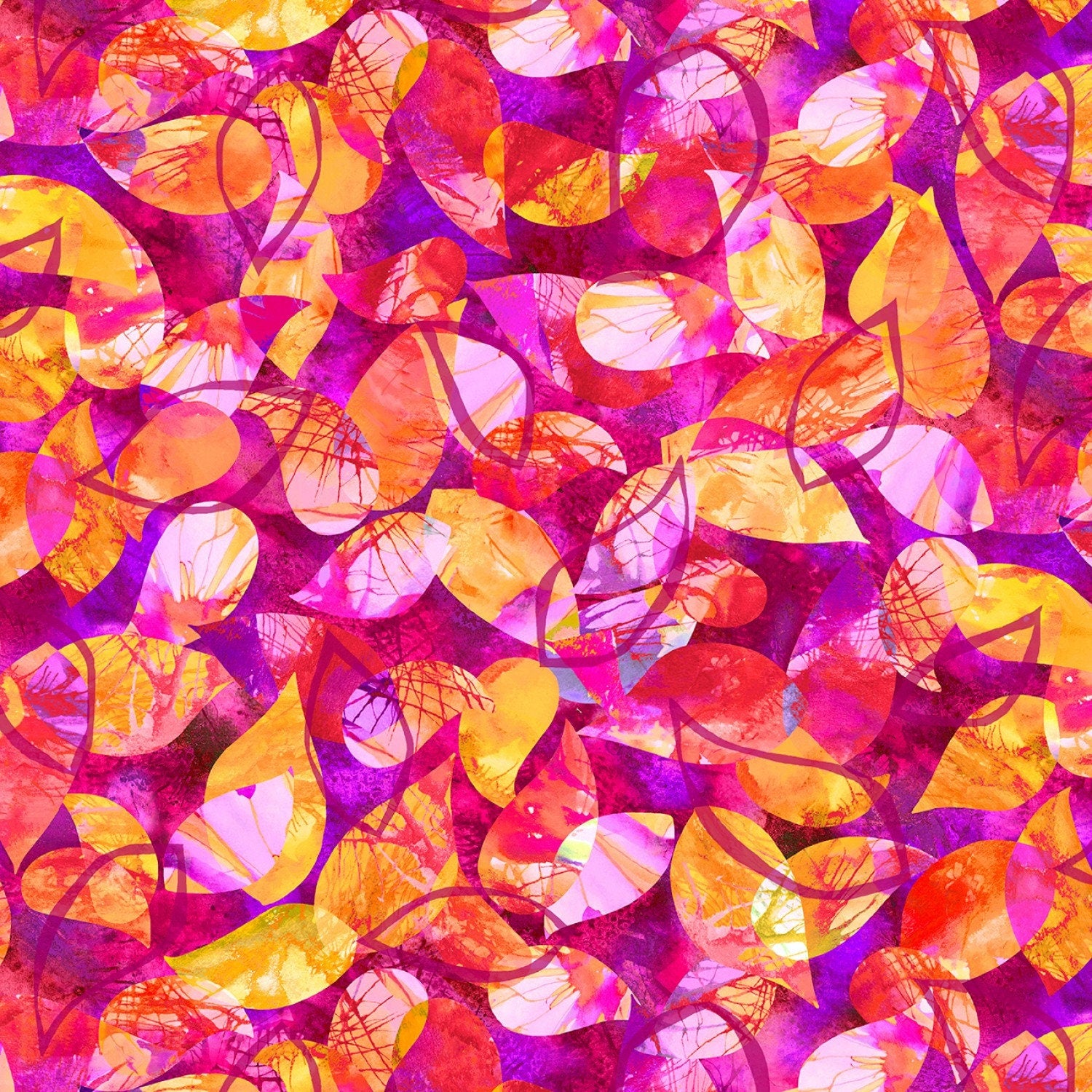 Wild Birds by Kim Green Red Leaves Digitally Printed WILB4010-R Cotton Woven Fabric