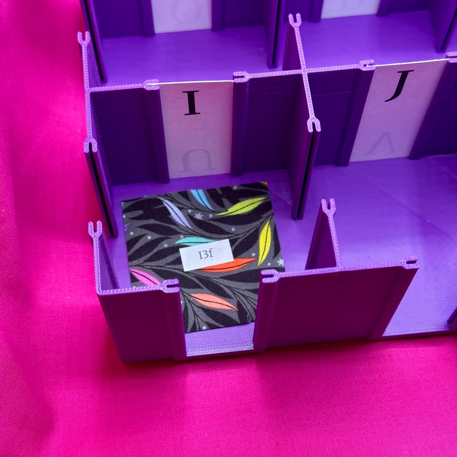 The Fabric Flispy(TM) by The Crafty Nuisance is a grid-based quilter's best friend! This 9x12" organizer can hold at least 130 squares up to 2.5" in each of the 12 sections. Plus each section can be labeled (with the included double-sided labels) to make sorting your squares simple and easy! No need to use plastic bags or manage wild piles that could accidentally end up in the scrap bin!