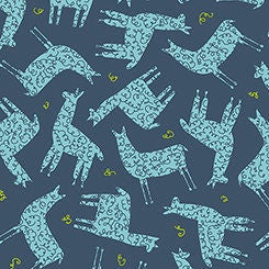 Alpaca Picnic Alpacas Silhouettes on Navy Cotton Woven