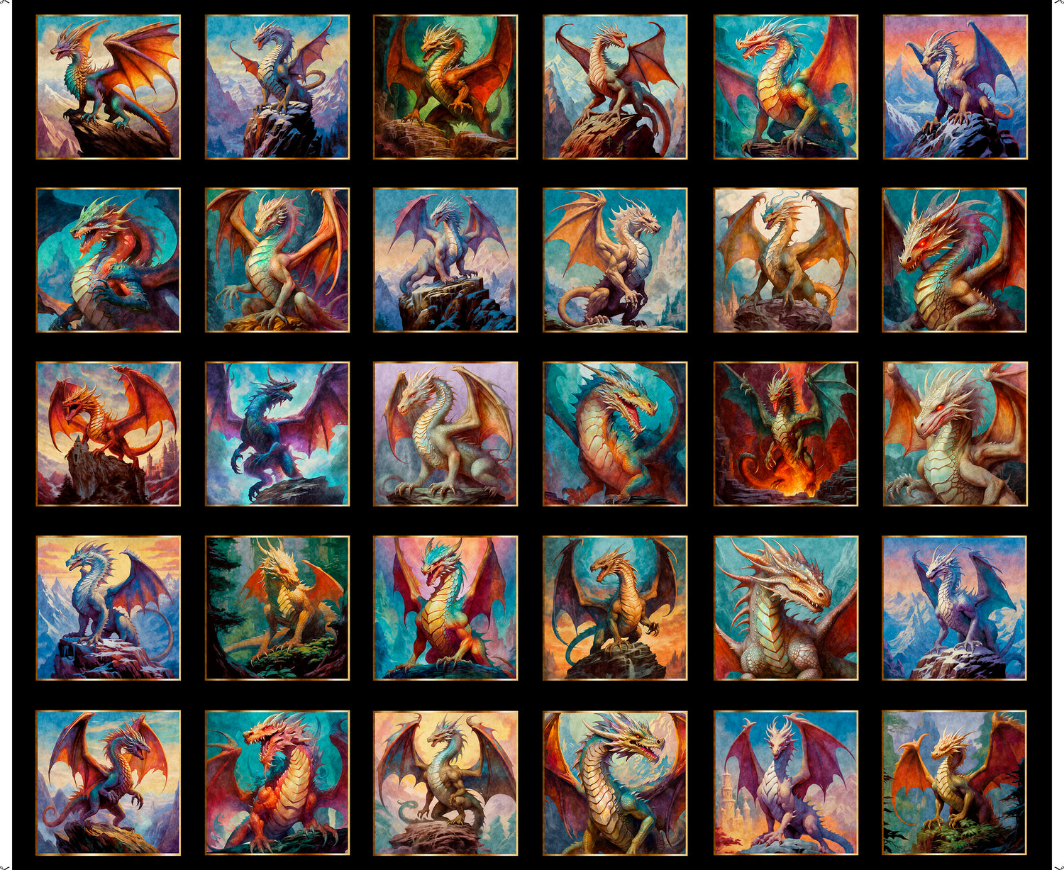 Dragon’s Song by Morris Creative Group 36" Panel Dragon Blocks Black 31150J Cotton Woven Panel