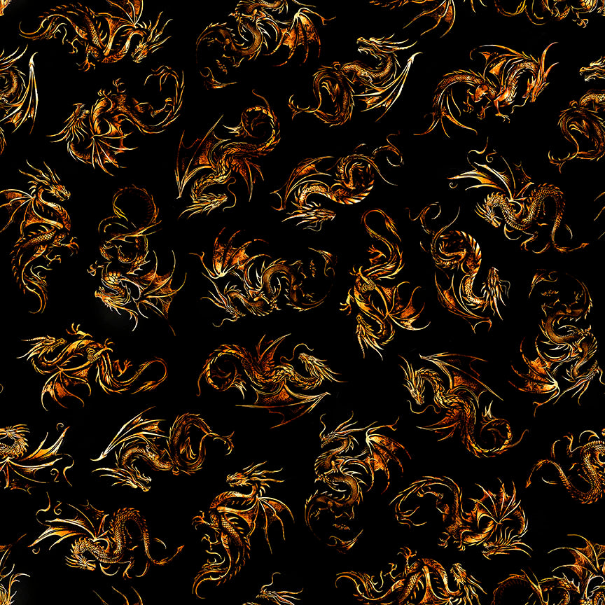 Dragon’s Song by Morris Creative Group Dragon Linocut Black 31154J Cotton Woven Fabric