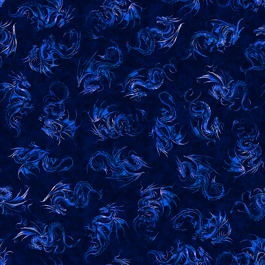 Dragon’s Song by Morris Creative Group Dragon Linocut Royal 31154Y Cotton Woven Fabric