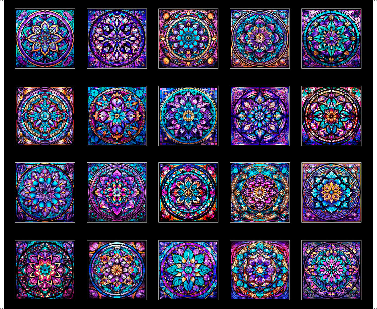 Night Flight by Morris Creative Group 36" Panel Stained Glass Blocks Black 30751J Cotton Woven Panel