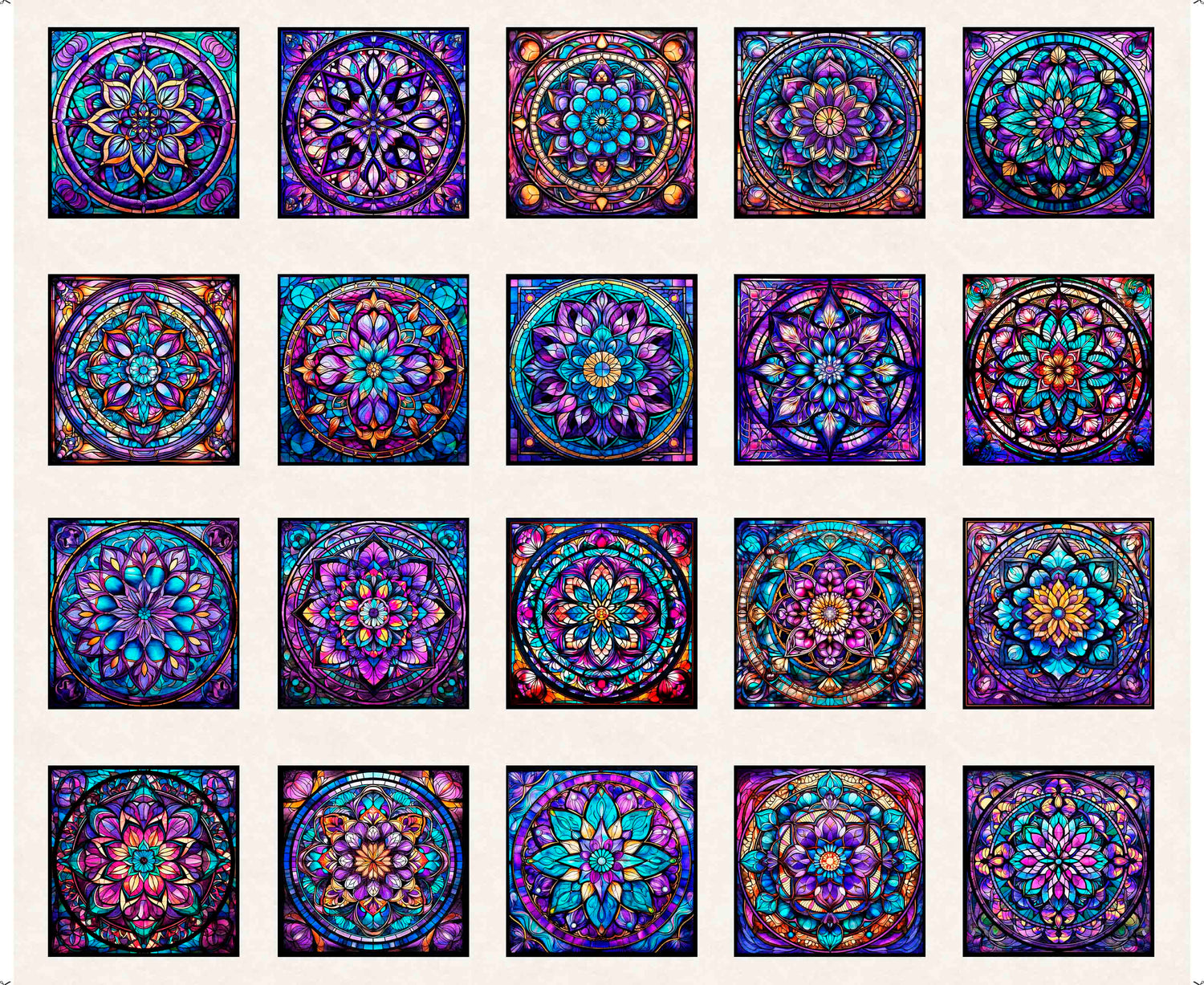 Night Flight by Morris Creative Group 36" Panel Stained Glass Blocks White 30751E Cotton Woven Panel