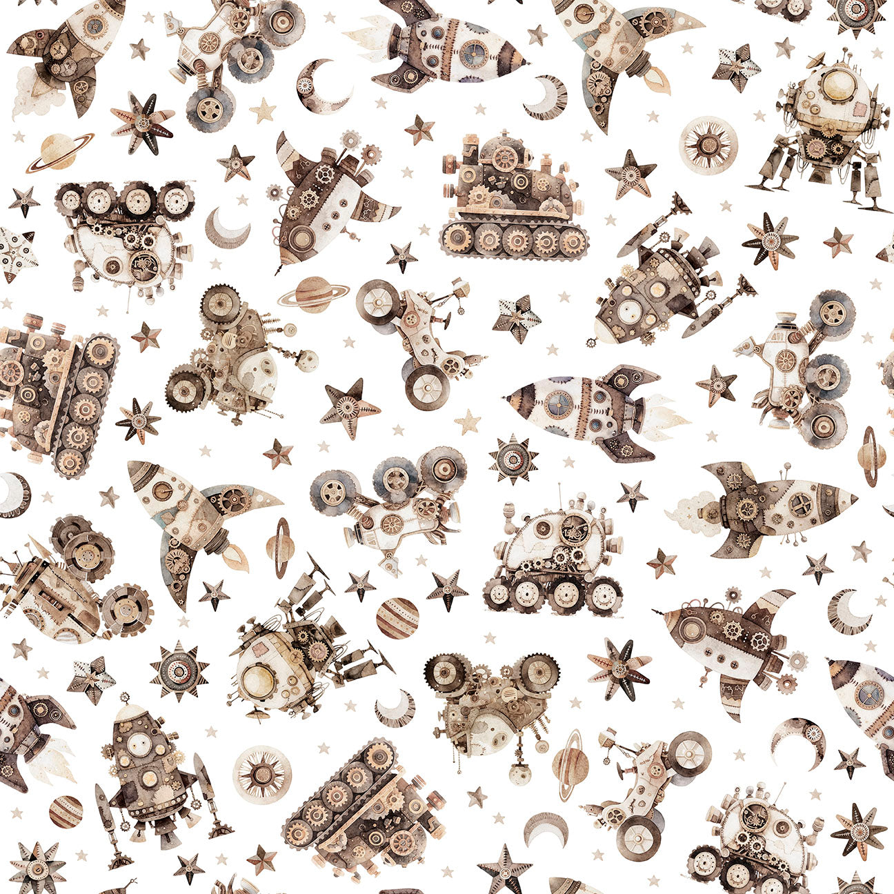 Sewbots Robot Vehicles White 31379Z Cotton Woven Fabric