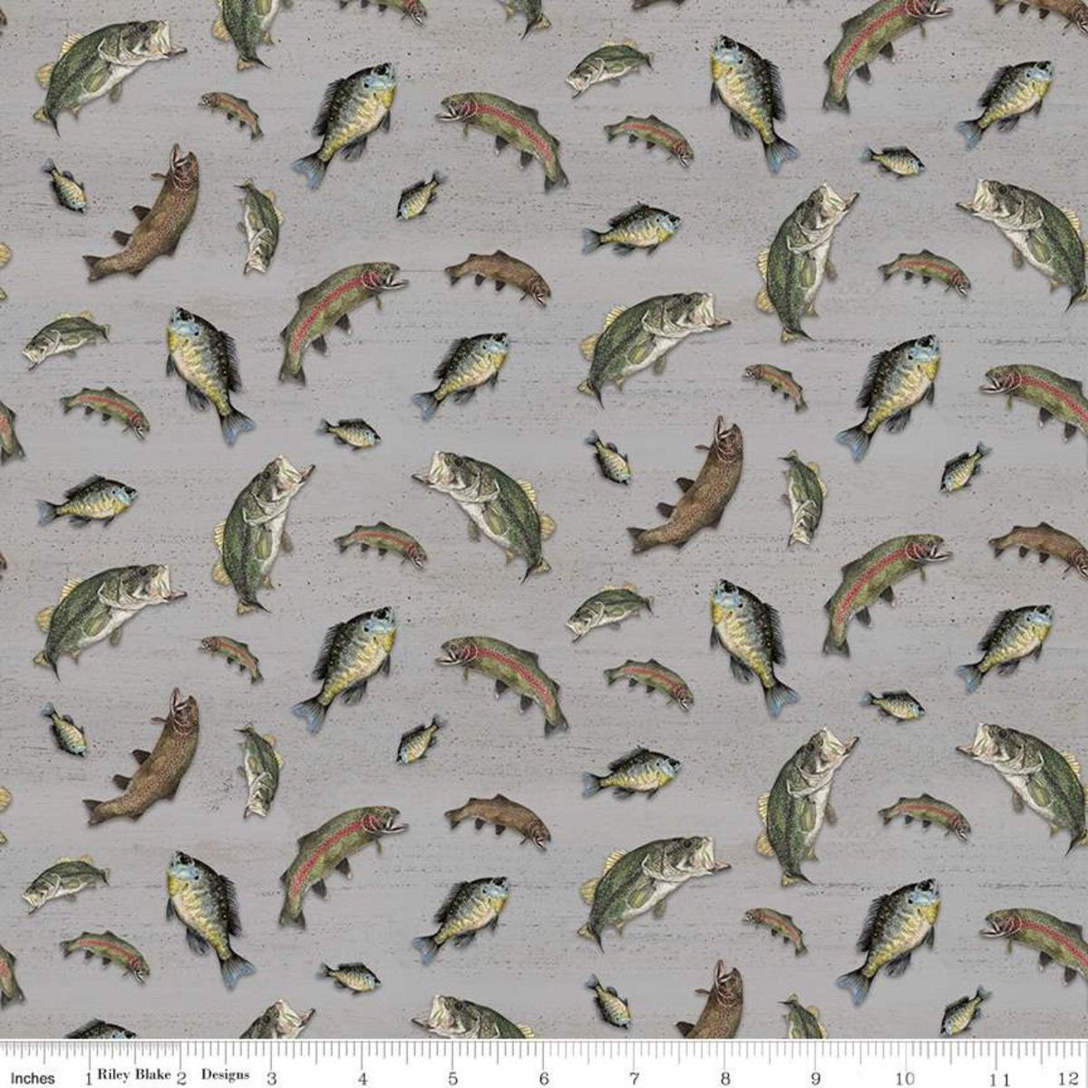 At The Lake by Tara Reed Fish Gray C10552-GRAY Cotton Woven Fabric