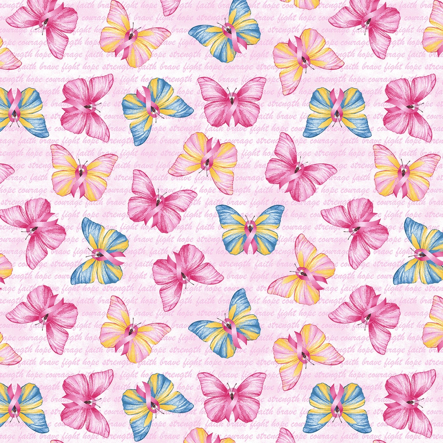 A Pink Celebration by Lilac Bee Designs Butterflies On Script Pink 7308-22 Cotton Woven Fabric