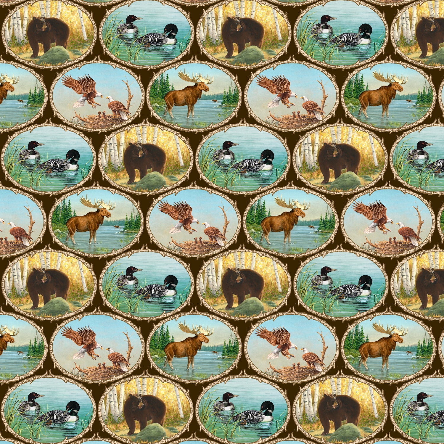 Along the Valley by Harry W. Smith Wildlife Medallions Brown 6454-39 Cotton Woven Fabric