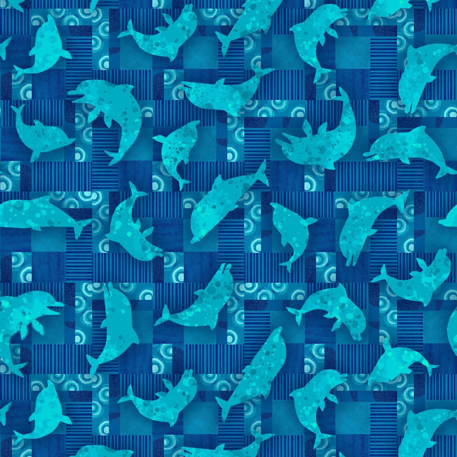 Blooming Ocean by Pam Vale Dolphin Toss Blue 5406-71 Digitally Printed Cotton Woven Fabric