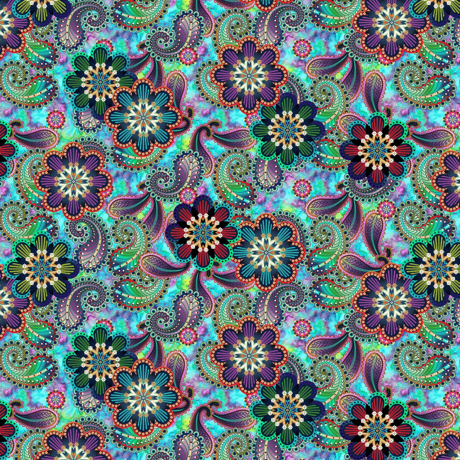 Blooming Paisleys by Art Loft Large Medallion Allover Indigo 5599-77 Digitally Printed Cotton Woven Fabric