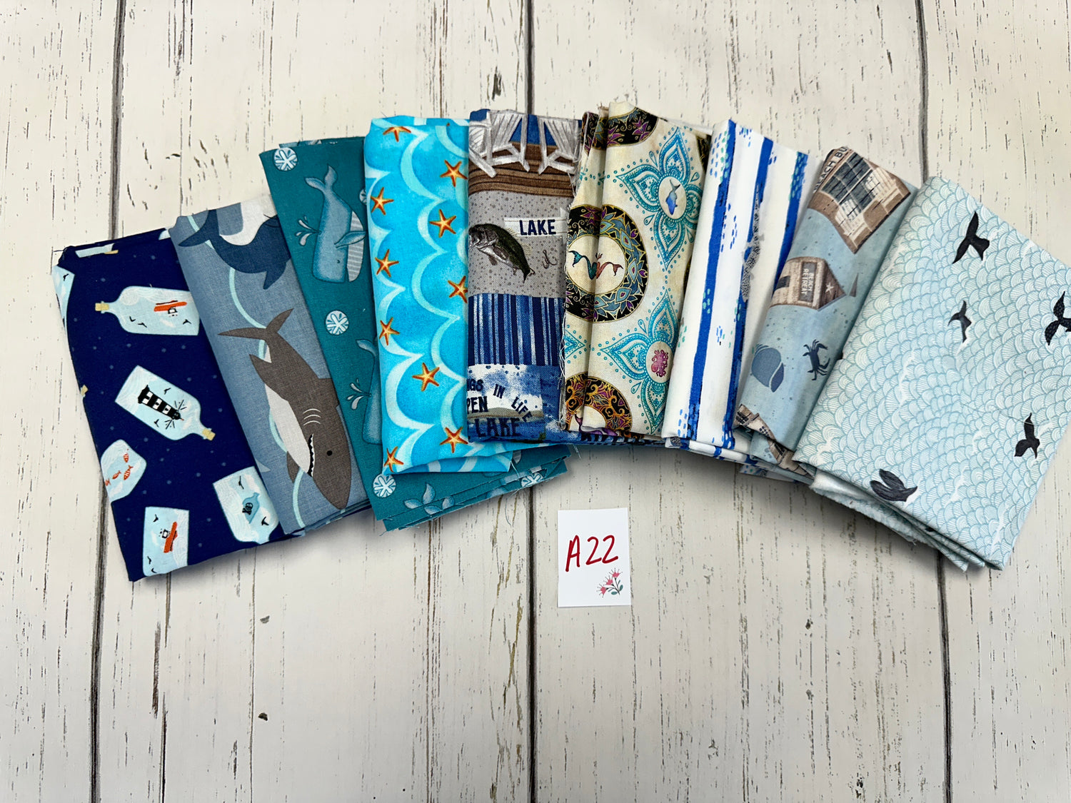 Estimated 5 yards of 43/44" Wide 100% Cotton Fabrics. Most pieces are less than 1/2 yard in length
